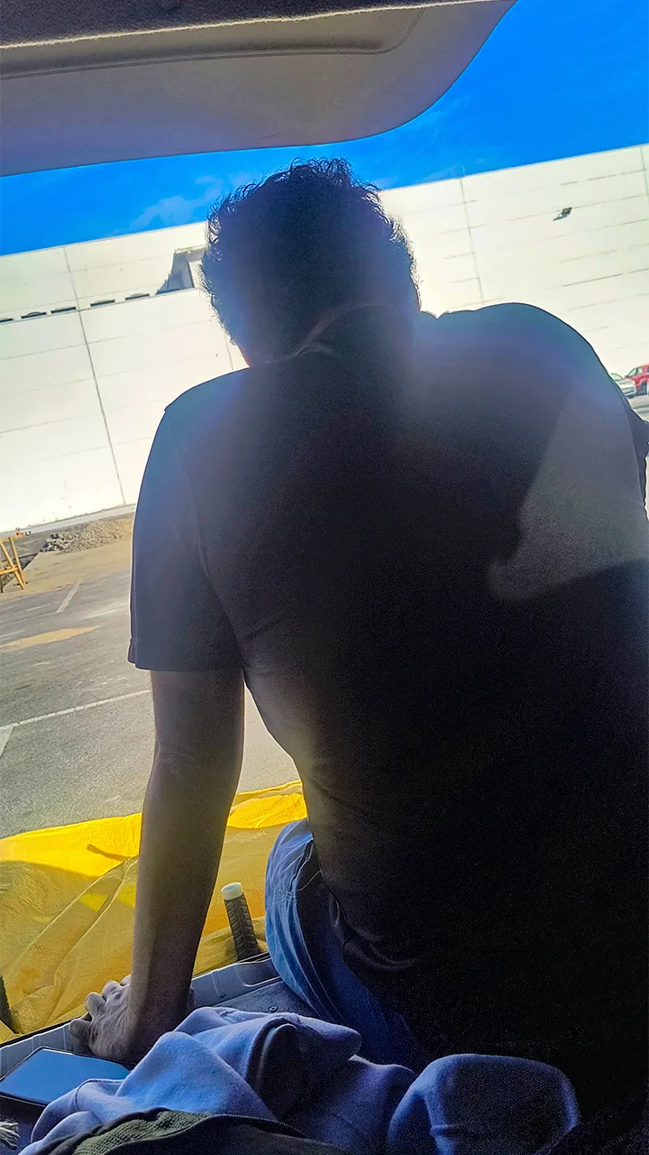 À noite, antes de me deitar, fui até a conveniência tomar um cházinho quente, daqueles que abraçam por dentro. De volta ao carro, tirei um tempinho para cuidar da minha escara, me dando aquele cuidado necessário que o corpo sempre pede depois de um dia calmo. E assim encerramos mais um capítulo simples e acolhedor da nossa jornada.