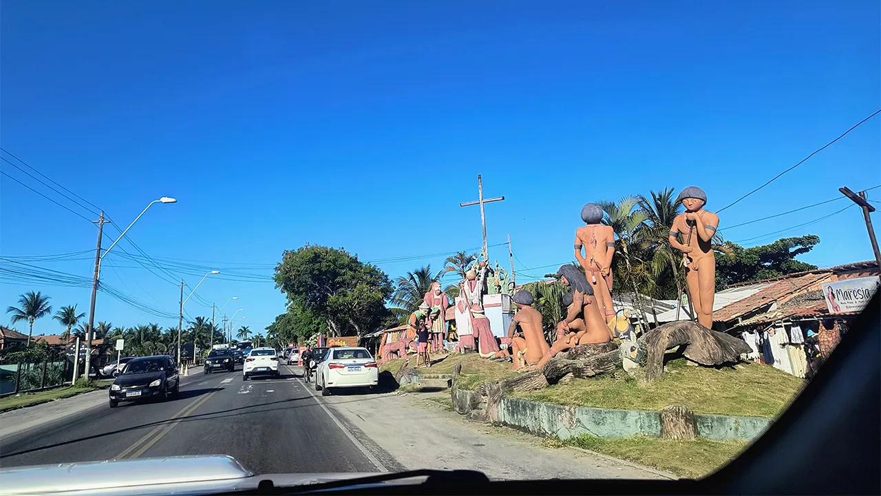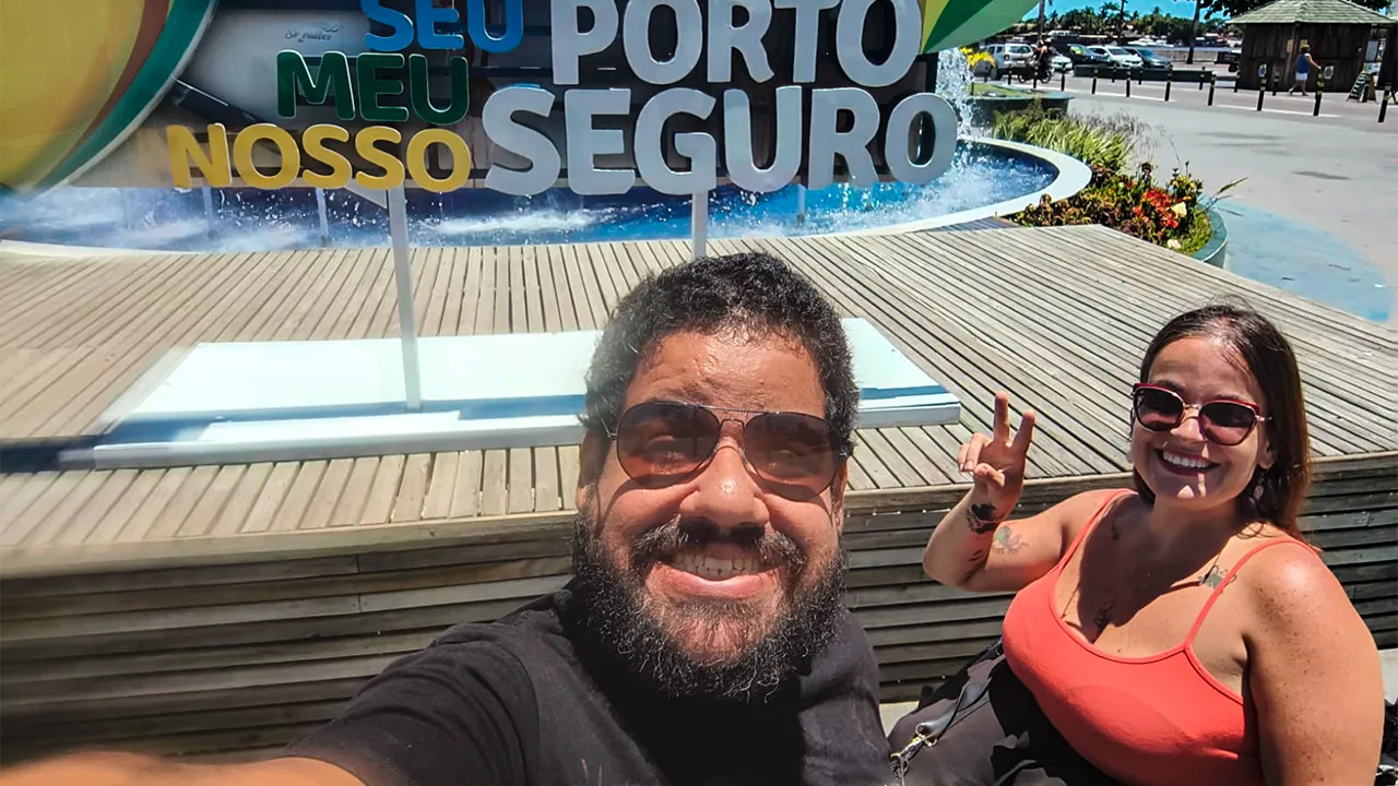 Hoje o dia começou cedo, nos despedindo do casal de viajantes JT na Estrada, que seguiram viagem enquanto nós decidimos explorar um pouco mais Porto Seguro. Começamos pelo centro da cidade, onde tentamos consertar o óculos do John que havia quebrado, mas infelizmente não tivemos sucesso. Aproveitamos para passear pelo centro e, apesar de o encontrarmos bastante charmoso, percebemos que a acessibilidade ainda precisa de muitas melhorias.