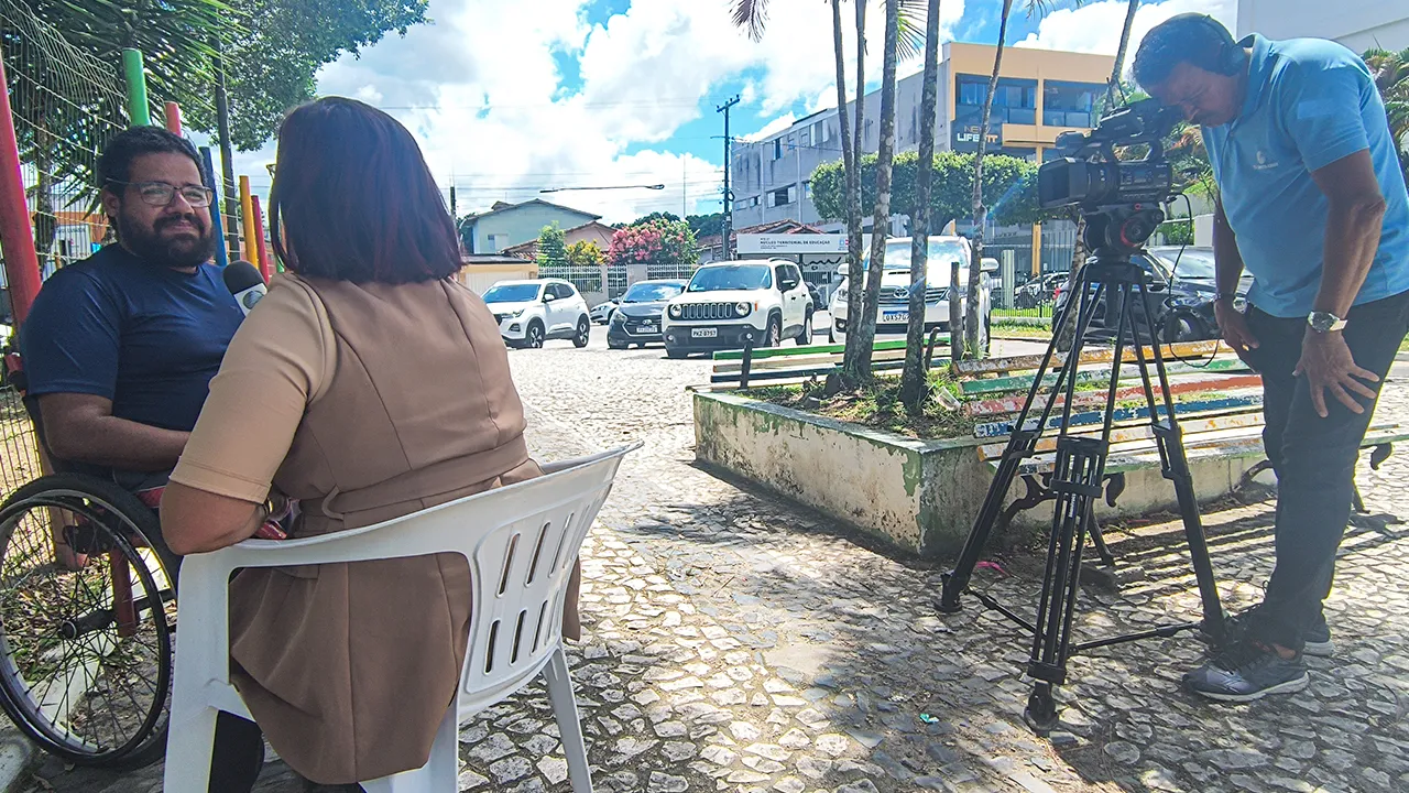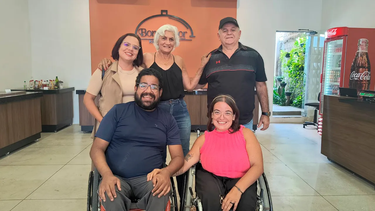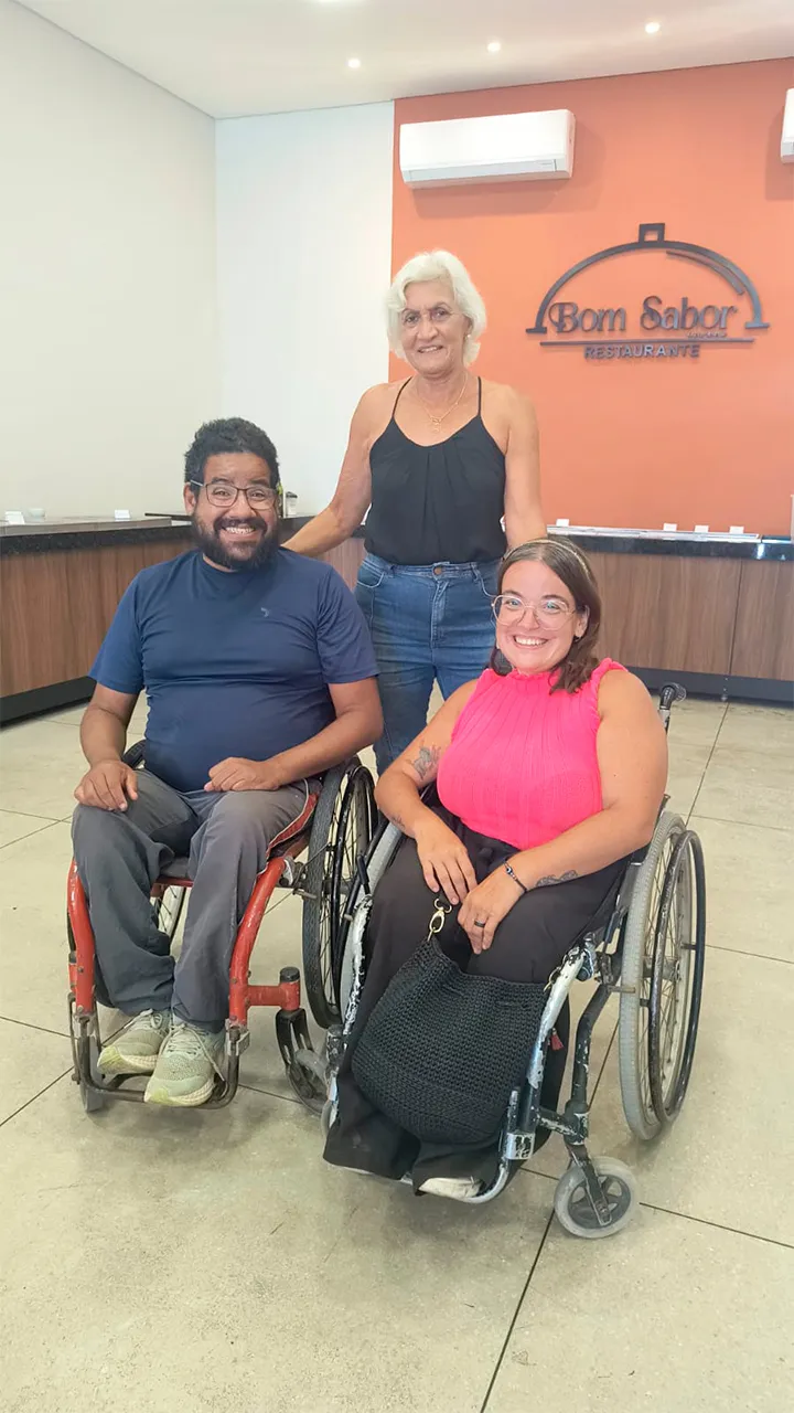 Hoje o dia começou bem cedo, acordamos às 5h da manhã para tomar banho e nos prepararmos para seguir viagem até Eunápolis, onde tínhamos uma gravação marcada para a TV Globo local. Chegando lá, enquanto esperávamos a equipe de produção, aproveitamos para tomar nosso café da manhã. Logo que a equipe chegou, fizemos as gravações e, em seguida, fomos convidados pela repórter para acompanhar outra reportagem que ela faria na Associação dos Deficientes Físicos de Eunápolis.