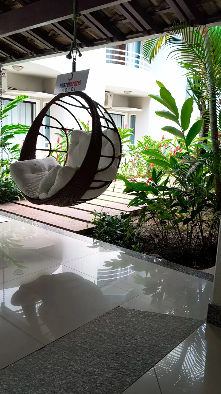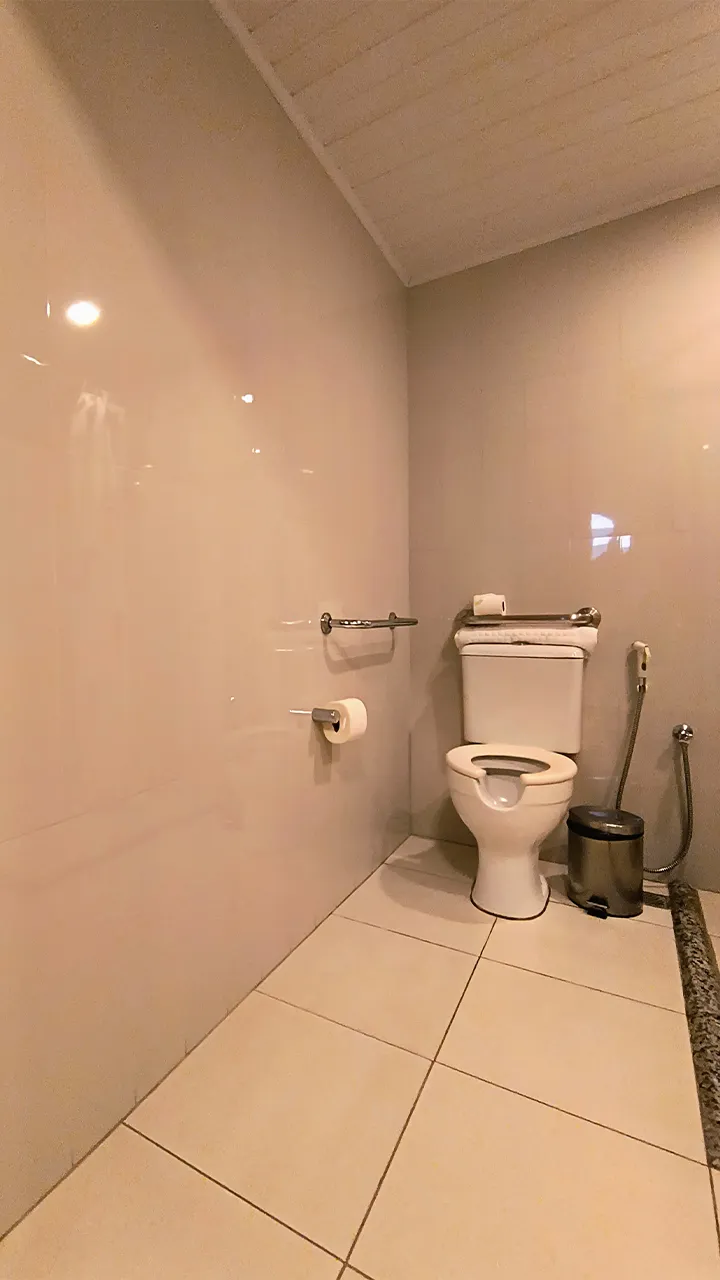 Chegamos ao Hotel Porto Napolis, e a primeira coisa que nos chamou atenção foi a acessibilidade impecável do lugar: rampas que levam até a piscina, quarto PCD no andar térreo e até uma rampa que conecta a garagem à recepção. O hotel realmente está de parabéns por proporcionar um ambiente inclusivo e acessível.