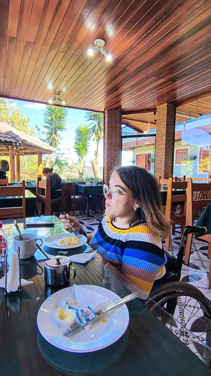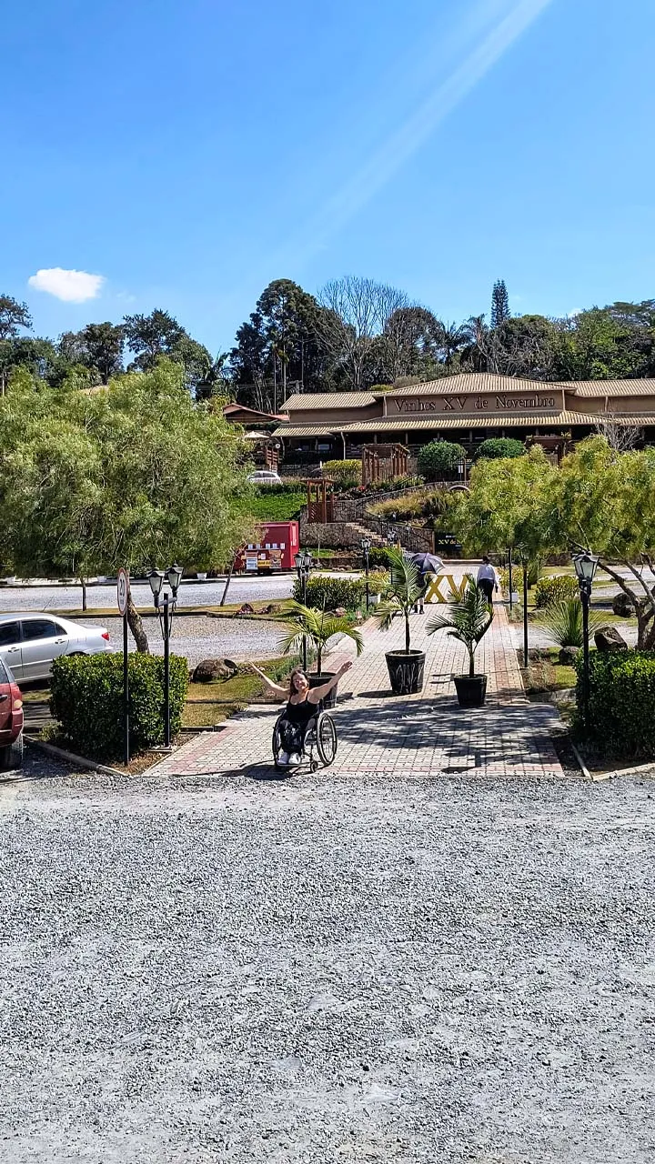 Chegamos em Campos com aquele clima de chuvinha e friozinho típico da serra. ❄️☔ O problema foi que o local onde iríamos ficar disse ter acessibilidade, mas ao chegarmos vimos que não tinha nada disso. Infelizmente, muitos ainda acham que basta colocar o quarto no térreo para ser acessível – e não é bem assim. Acessibilidade de verdade vai muito além disso!