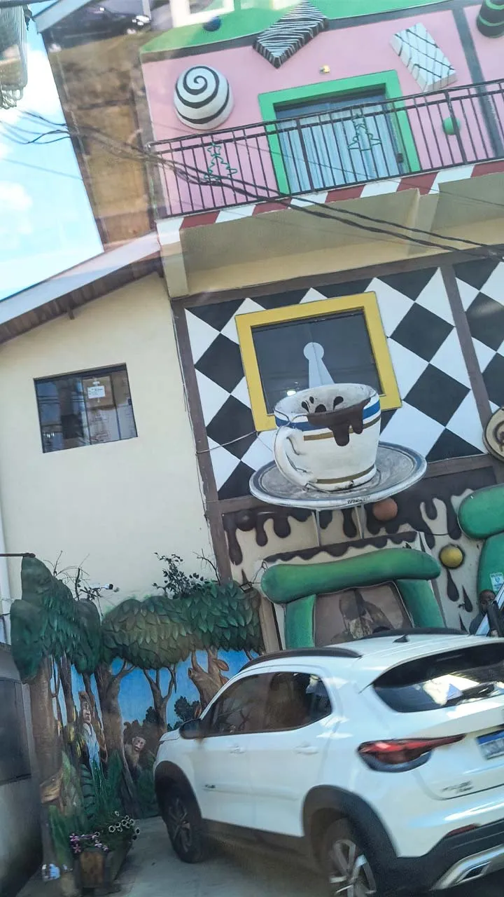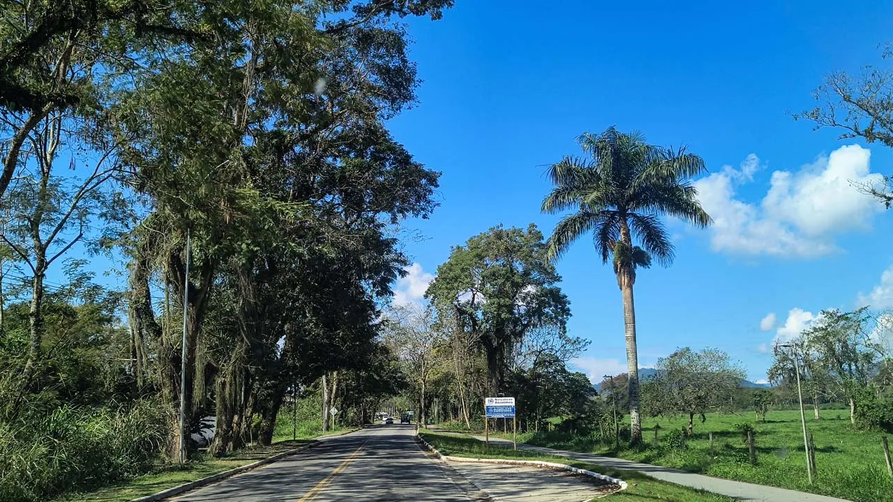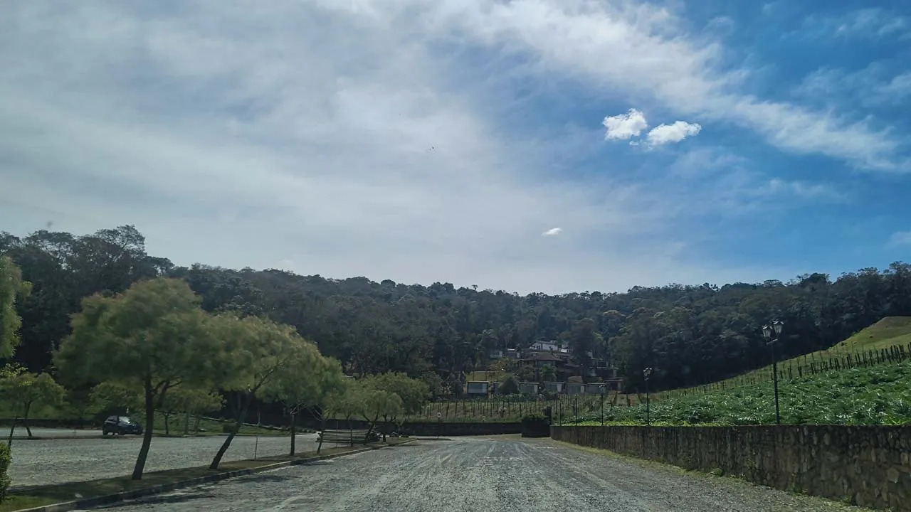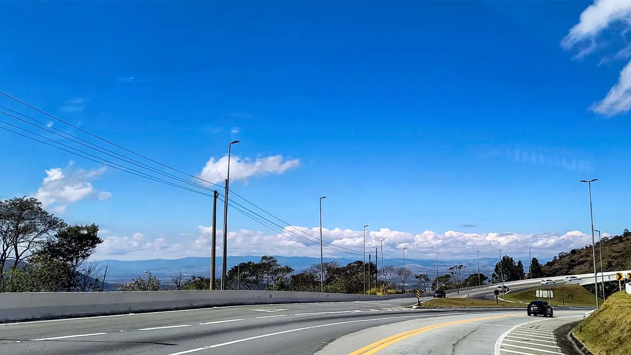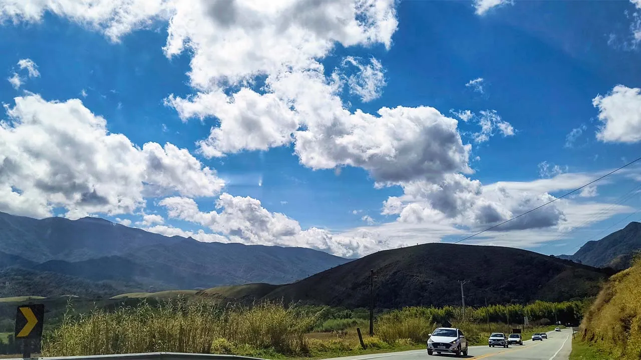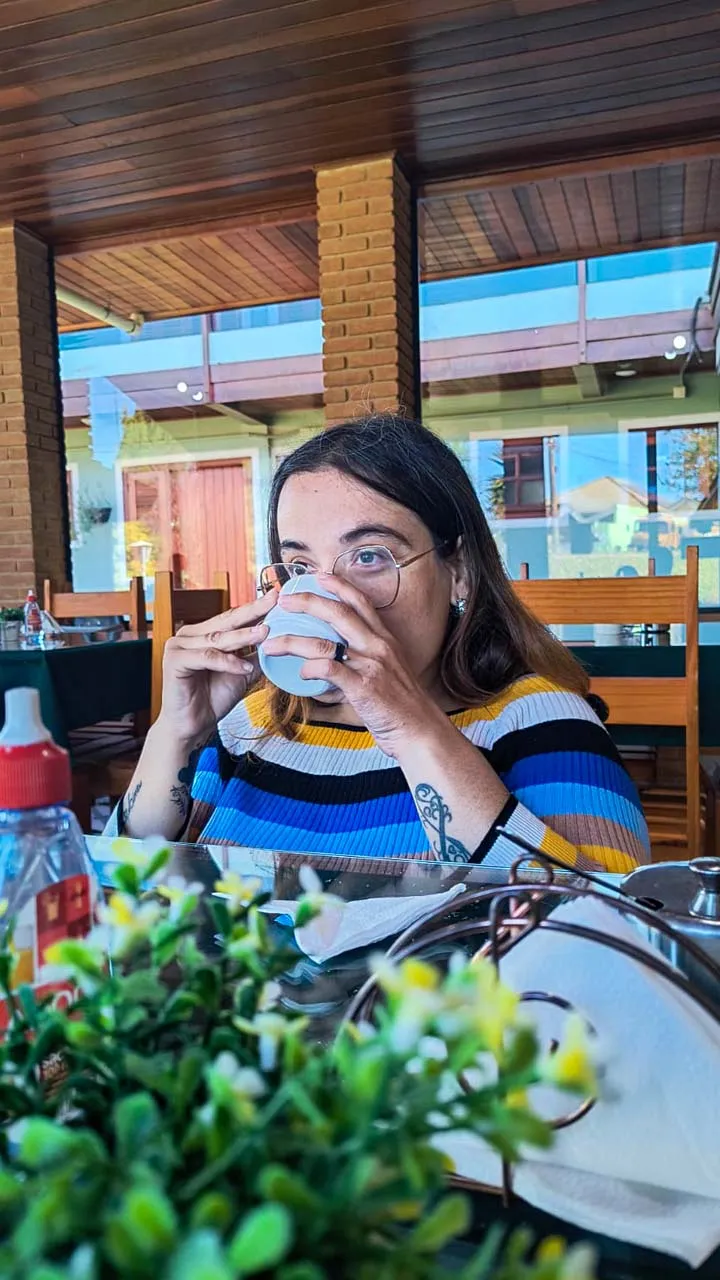Pegamos estrada e enfrentamos muitas curvas no sobe e desce da serra — e nessas horas a Sthefanie sempre sofre um pouco, já que o estômago não gosta nada desse balançar.