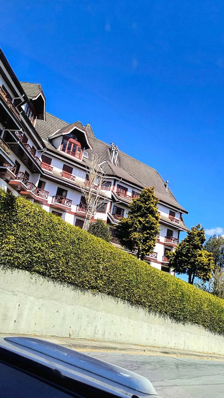 Depois seguimos viagem rumo a Campos do Jordão. Sthefanie não passou muito bem no caminho, já que tomou um suco de limão no hotel anterior e, por conta da saúde dela, só pode beber água mineral. Nem mesmo suco caseiro entra na lista.