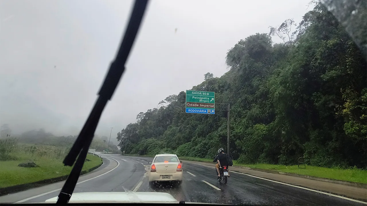 Hoje, finalmente pegamos a estrada novamente! Mais uma vez, queremos agradecer imensamente à irmã do John, minha cunhada, pela recepção calorosa e todo o carinho. A jornada continua, e nosso próximo destino é uma nova cidade em Minas Gerais. Ainda não decidimos qual, mas não iremos muito longe. Com a chuva persistente e sem sinais de trégua, resolvemos parar em Caxambu. Vamos passar a noite em um posto de gasolina por aqui e, amanhã, decidiremos o que faremos. Mais um dia de estrada e novas aventuras nos aguardam!