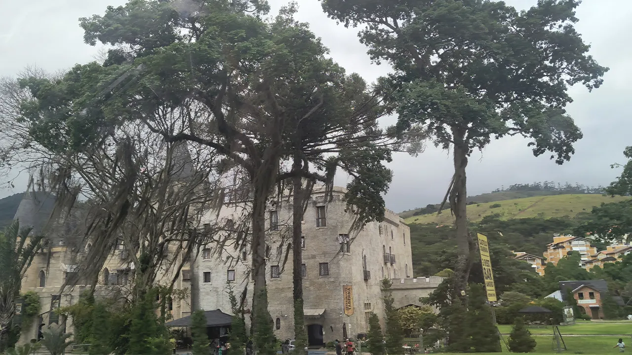 A viagem foi tranquila até chegarmos a Petrópolis. O clima lá estava uma delícia, com aquele frescor da serra. No entanto, com as voltas da estrada, comecei a sentir um leve enjoo, mas graças a Deus tudo ficou bem. Passamos pela frente do castelo Itaipava, que, aliás, é uma gracinha. Fico imaginando como deve ser encantador lá dentro!
