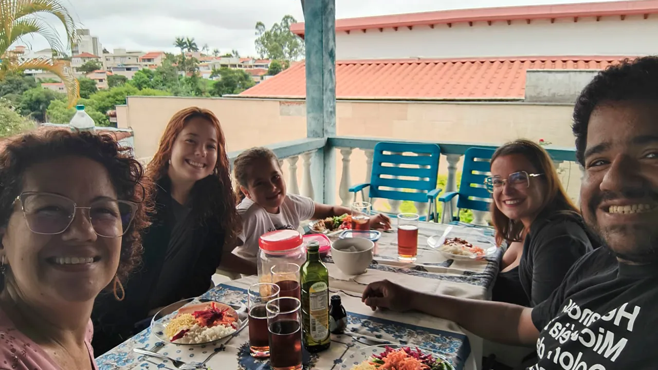 Enquanto José saiu para resolver algumas pendências, eu e John decidimos dar uma volta pela cidade. Para nossa surpresa, encontramos novamente a família de viajantes que havíamos conhecido mais cedo. Eles, de forma muito generosa, nos presentearam com um valor para que pudéssemos almoçar. Mais tarde, nos reencontramos com José na pracinha onde passaríamos a noite. A família seguiu para São Paulo, e nós ficamos ali conversando por mais um tempo.