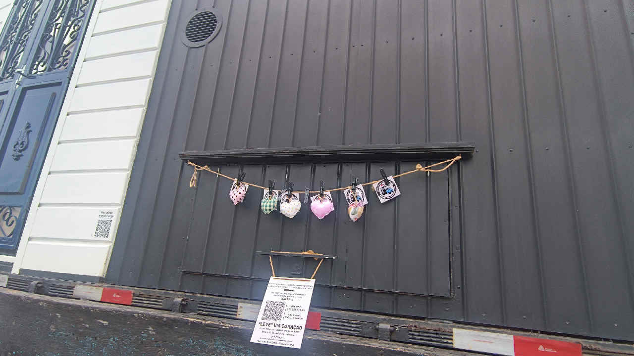 Depois, eu e John fomos experimentar os biscoitos que a Cris faz. Ela e o esposo estão na estrada viajando e vivendo seus sonhos, e levam junto uma doçura que dá gosto: biscoitos de manteiga deliciosos, daquele tipo que derrete na boca. Eles deixam alguns corações pendurados para quem quiser contribuir com a viagem deles, e é impossível não admirar tanto amor e dedicação no que fazem.