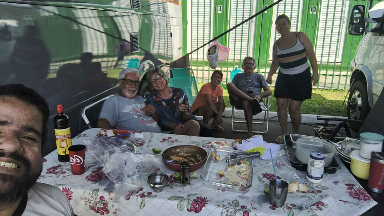 Hoje o nosso “condomínio de motorhomes” só cresce — cada dia chega mais gente, todo mundo na expectativa para a Expomotorhome. O clima de viagem, amizade e histórias compartilhadas deixa tudo ainda mais especial.