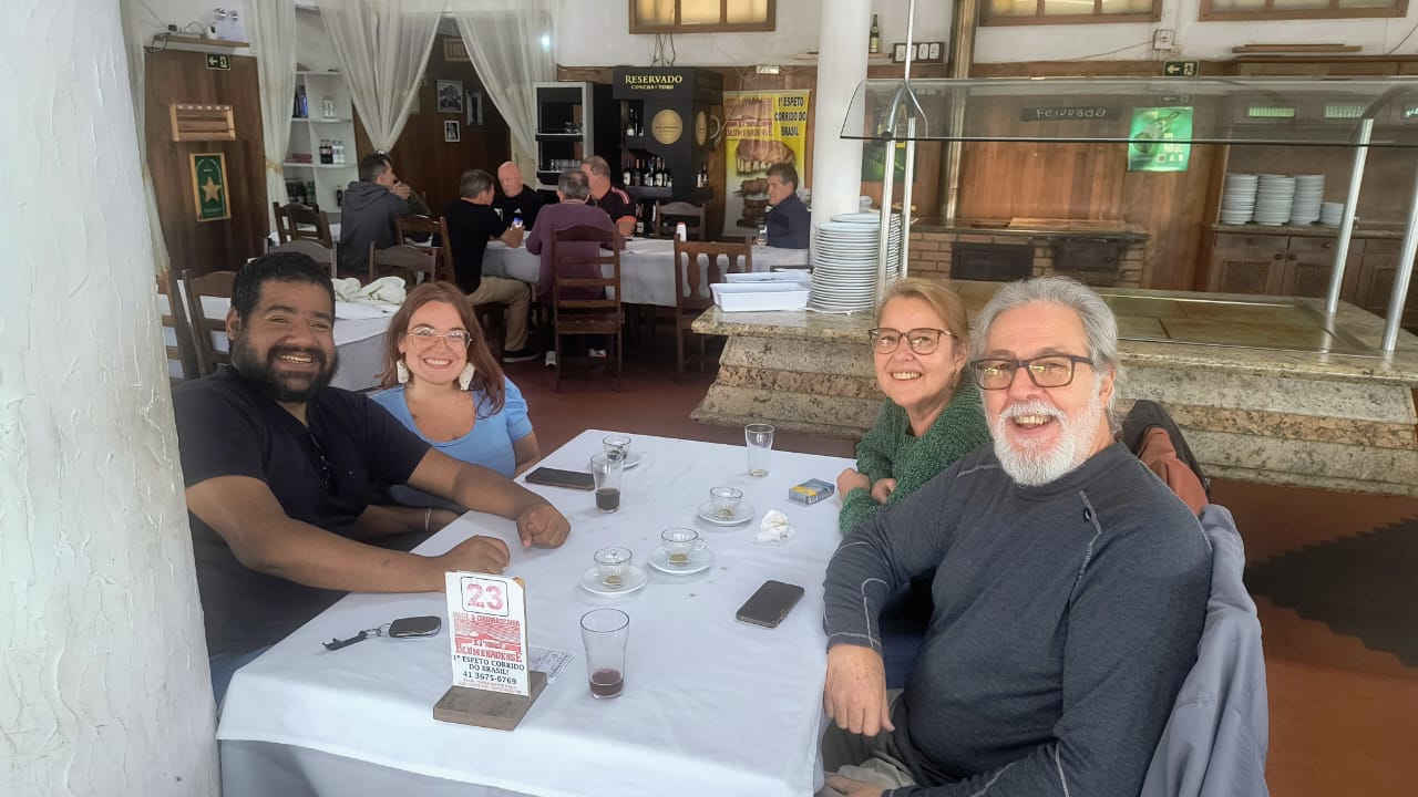 Fomos convidados pelo Luiz e pela Laura para almoçar em uma churrascaria famosa aqui no Paraná — justamente o lugar onde nasceu o primeiro espeto do Brasil. História, comida boa e uma companhia ainda melhor… tudo isso rendeu muitas risadas e uma energia gostosa que a gente precisava!