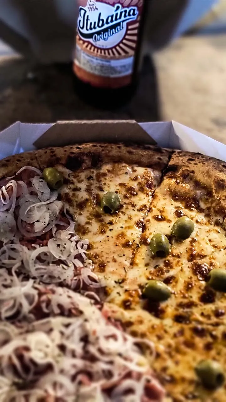 À noite, fomos surpreendidos com um presente delicioso: uma pizza maravilhosa da pizzaria @‌dobempizzabeer, que fechou o dia com chave de ouro. De barriguinha cheia e coração grato, seguimos para descansar e repor as forças para o próximo dia de aventuras.