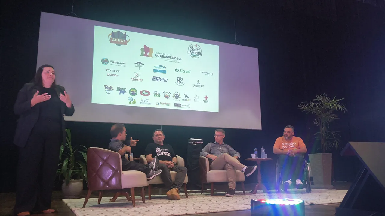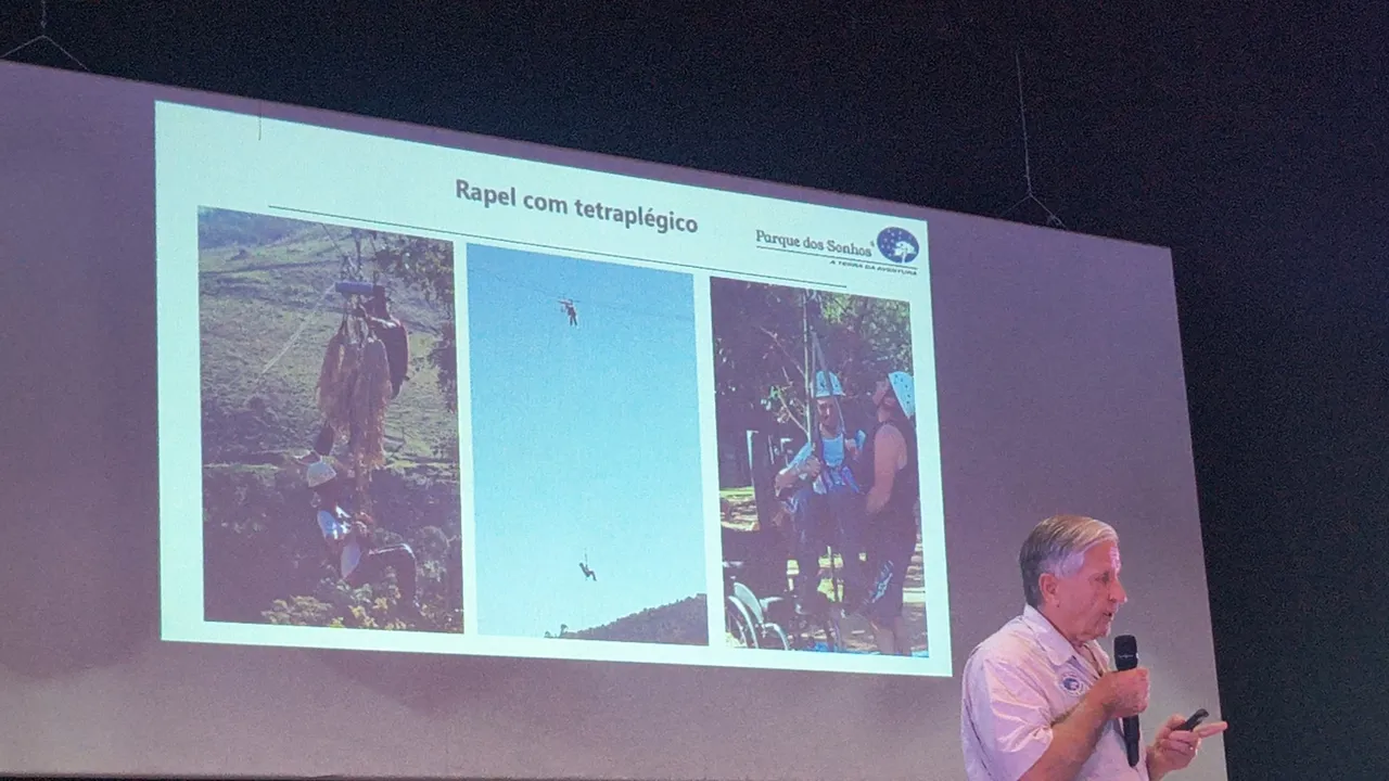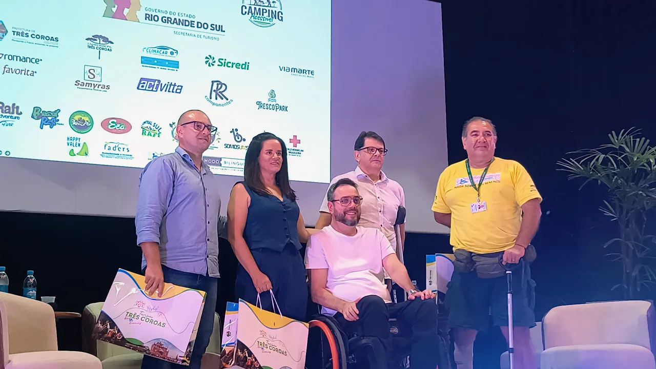 Depois de uma noite fria — mas aconchegante — aqui no camping acessível, acordamos prontos para um dia importante e especial: nossa participação no 1º Fórum Nacional de Turismo Acessível e Esporte de Aventura.