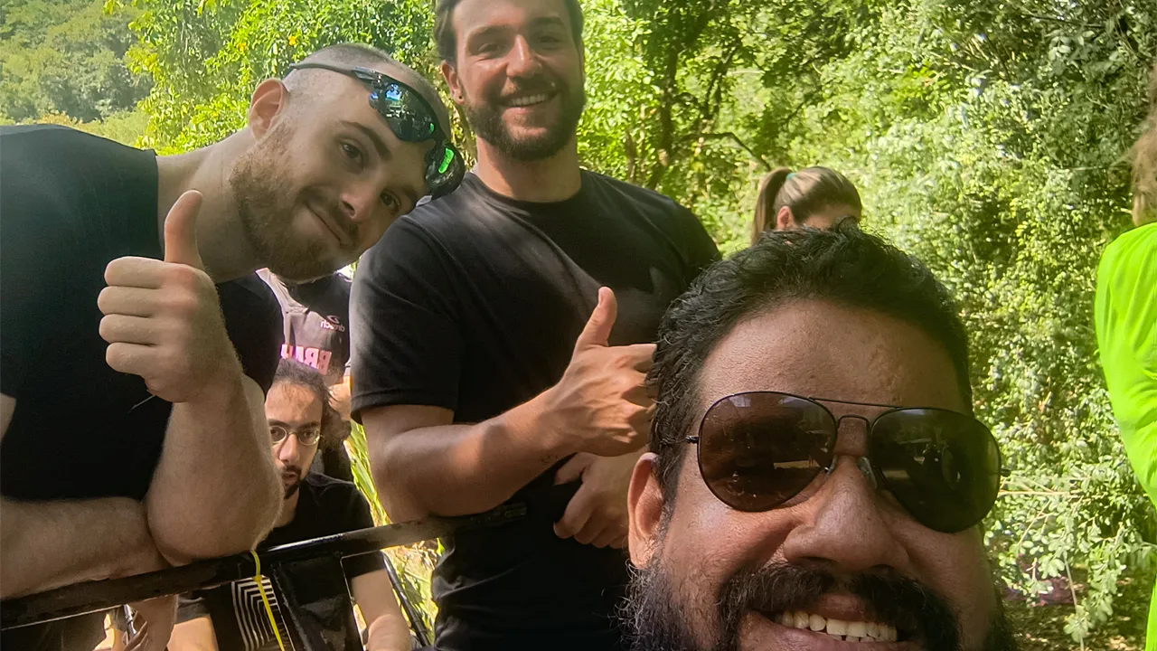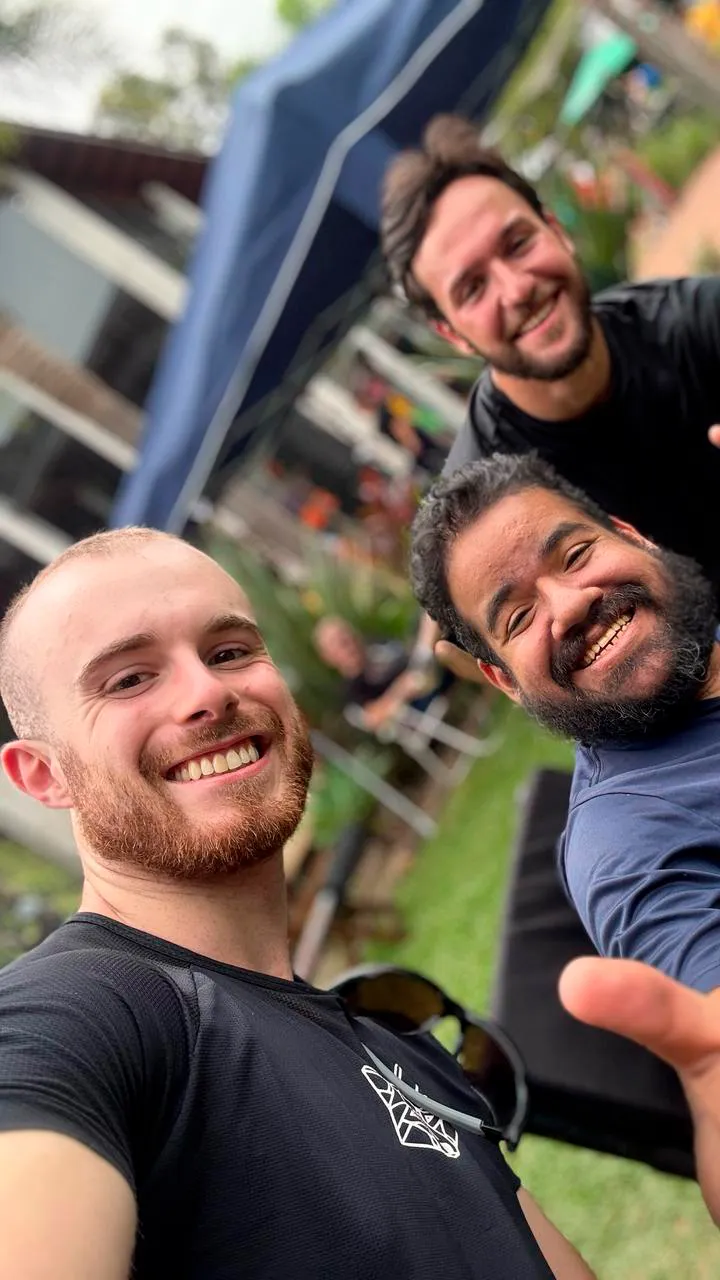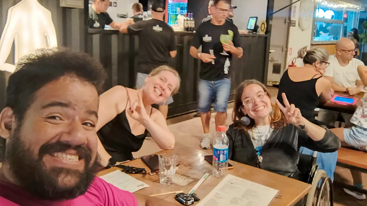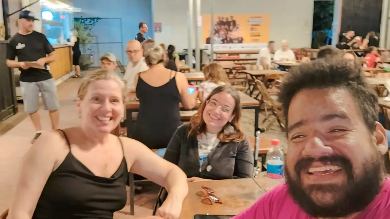 Depois do evento, aproveitamos para nos despedir do nosso amigo Fernando Fernandes, que seguiria viagem mais tarde. E, com tudo resolvido, eu e John decidimos matar a fome. No caminho até uma lanchonete, conhecemos a Mariane, que nos surpreendeu com um convite super legal: ir até um espaço com vários restaurantes em containers, perfeito para um papo mais descontraído.