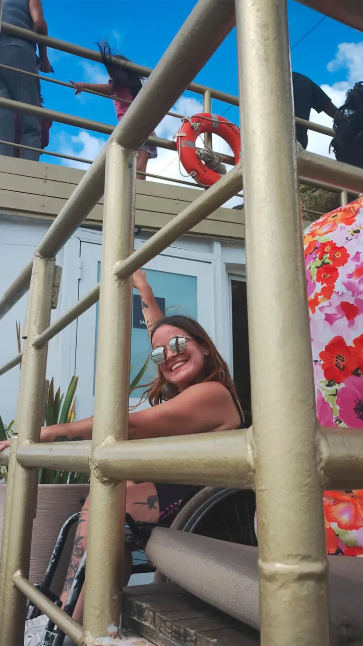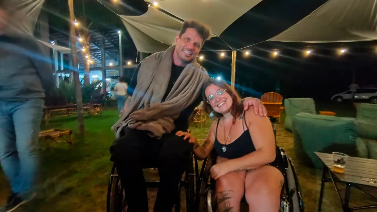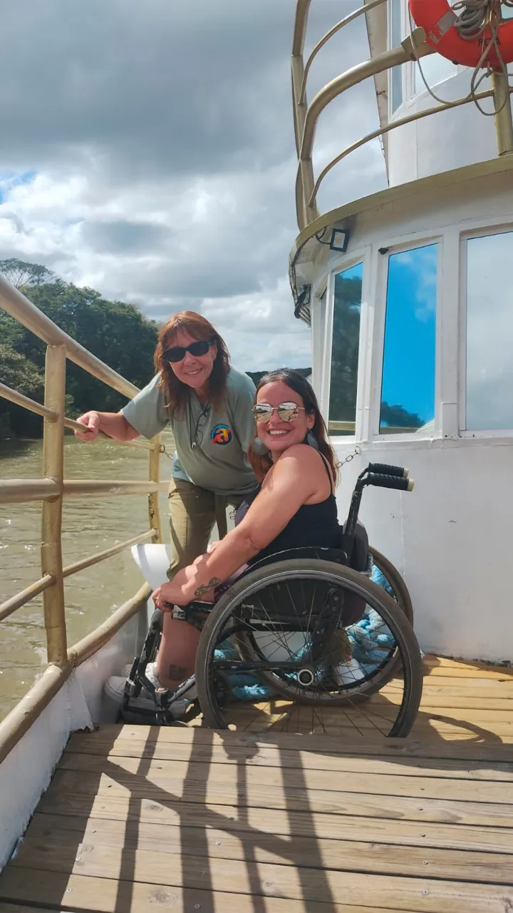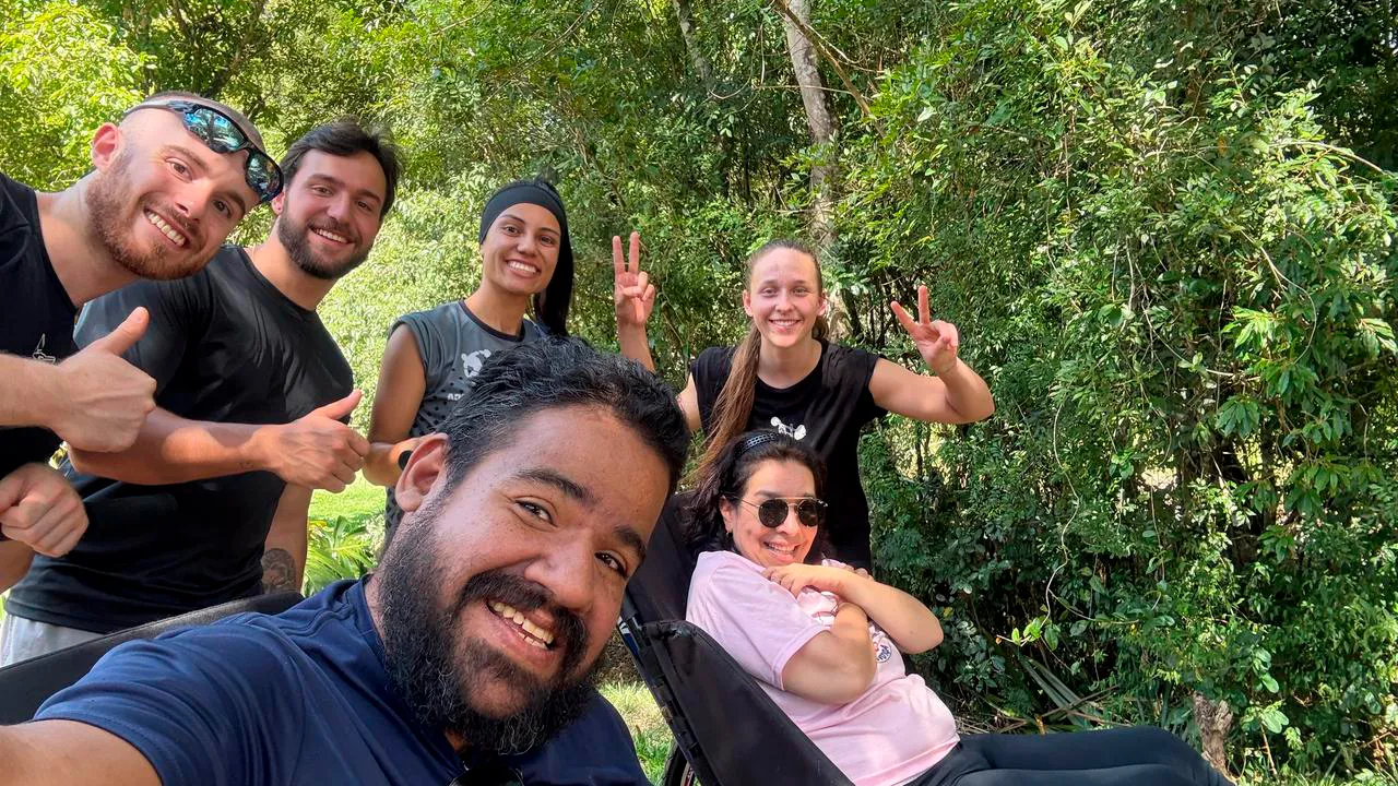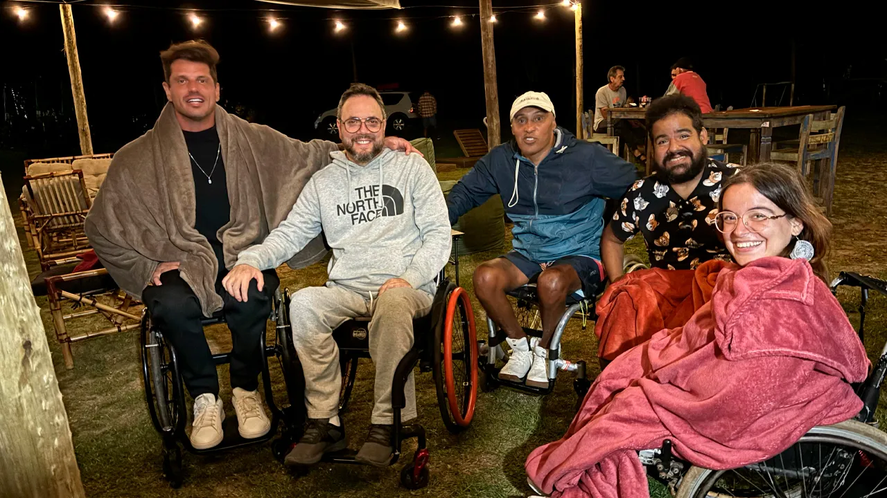 Quando voltei, John me contou como foi a trilha dele e juntos fomos curtir mais um esporte: arco e flecha! Um momento de foco, respiração e risadas. Para fechar esse dia cheio de adrenalina e superações, encarei a trilha — mas dessa vez em uma cadeira de rodas especial, própria para esse tipo de terreno. Foi minha primeira vez utilizando essa cadeira e confesso que tive alguns momentos de tensão, mas fui com coragem e terminei com o coração leve.