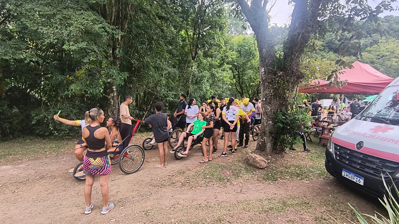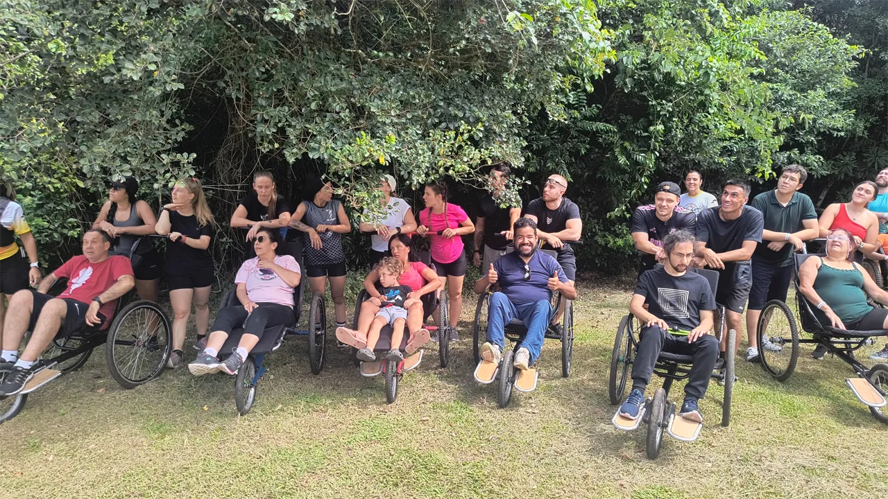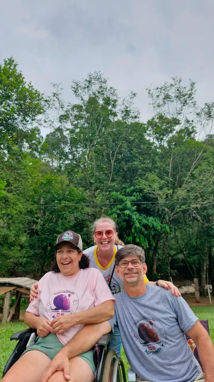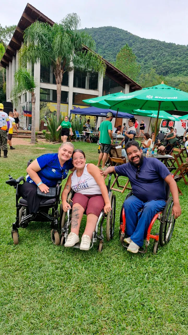 Hoje foi daqueles dias que a gente guarda no coração! Um verdadeiro Dia do Esporte para PCDs aqui no camping acessível, com muita animação, aventuras e encontros especiais. Já começamos o dia cheios de energia, andando de bicicleta adaptada — uma experiência que renova a alma e reforça como é possível viver o movimento com autonomia e alegria.
