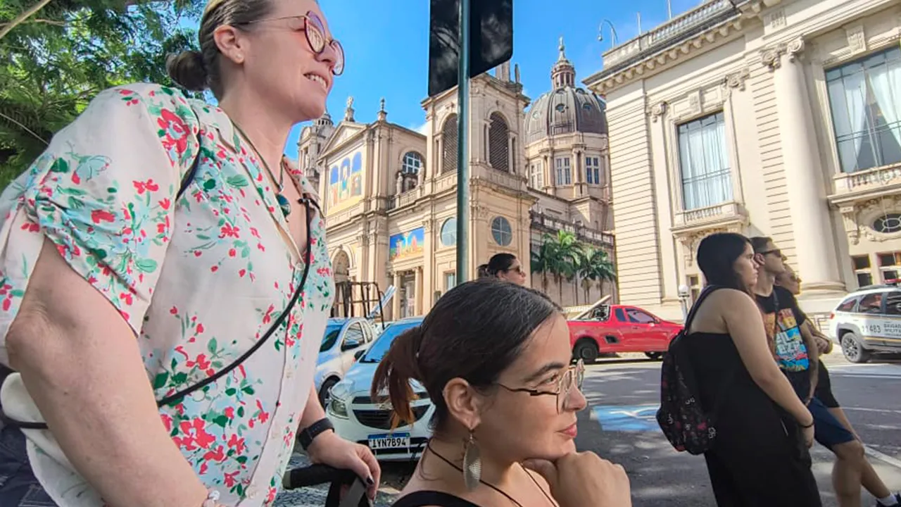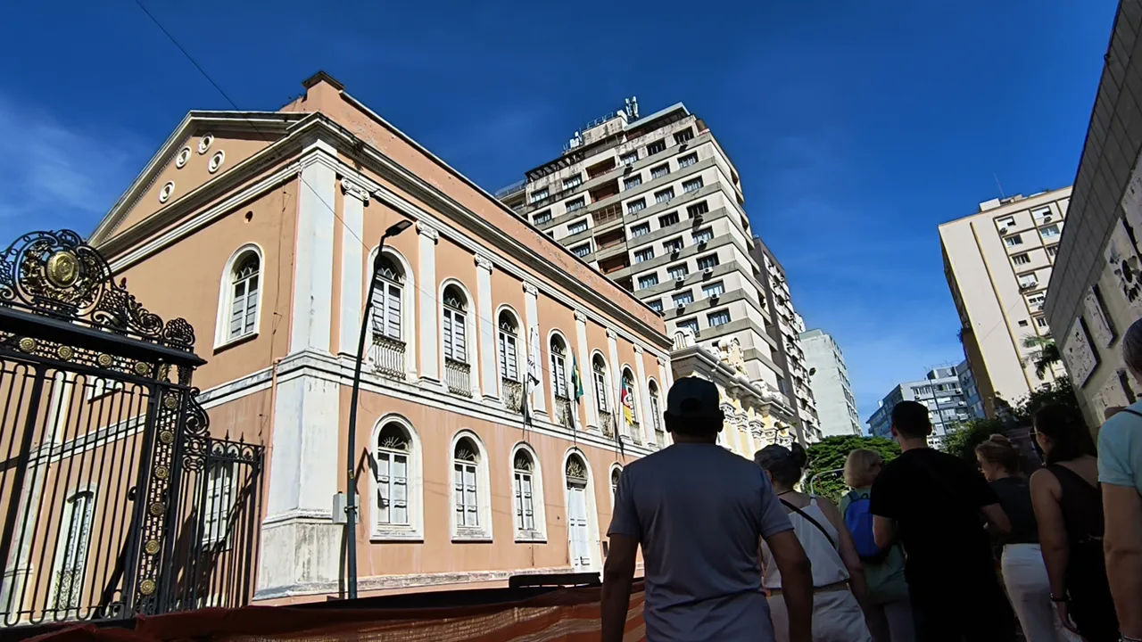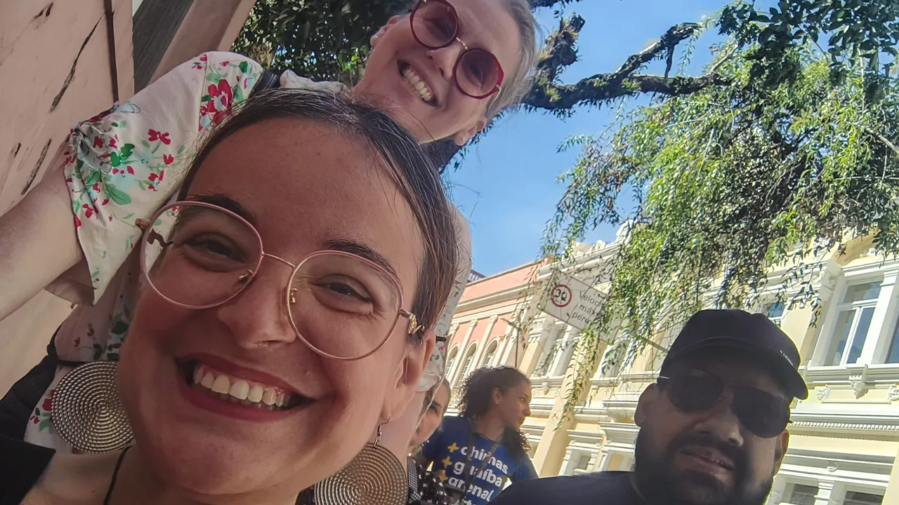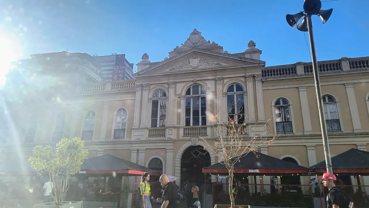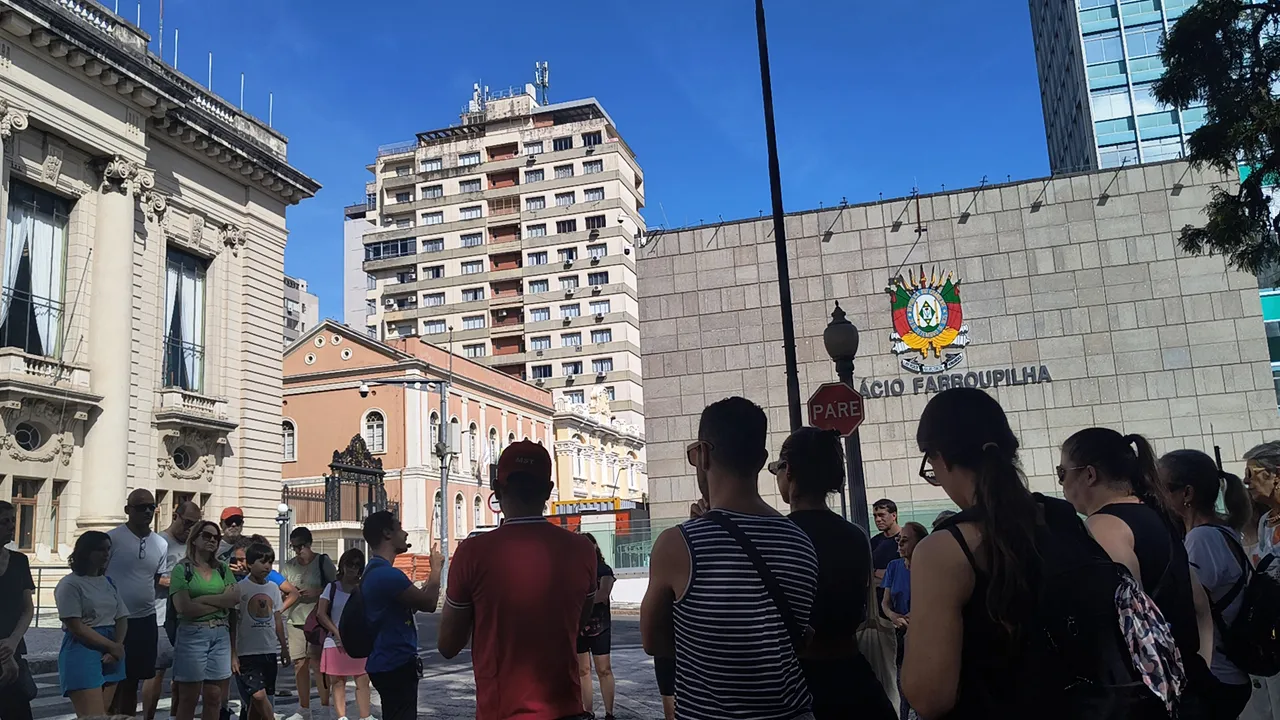 Em seguida, participamos do passeio Caminhadas da Memória – Ruas de Porto Alegre e suas histórias, conduzido por um guia muito atencioso e conhecedor da história da cidade. Mari esteve conosco durante todo o percurso, nos acompanhando com carinho e entusiasmo. Durante a caminhada, exploramos pontos históricos marcantes de Porto Alegre, como o Mercado Público, símbolo da tradição e da resistência cultural da cidade; a Praça da Alfândega, cheia de vida e palco de tantos eventos culturais; e a emblemática Rua dos Andradas (Rua da Praia), repleta de histórias que atravessam gerações.