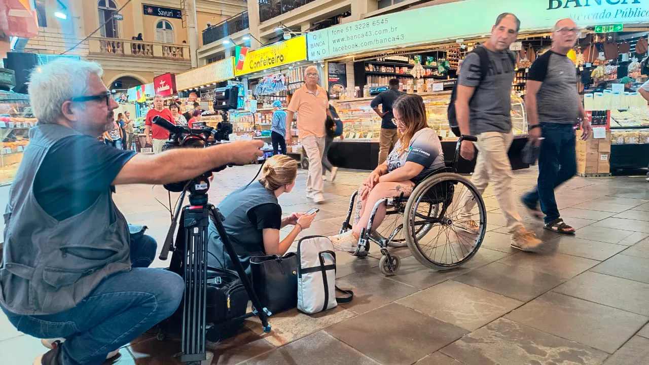 Com as roupas limpas e o cabelo do John na régua, seguimos para o Mercado. Logo que chegamos, fomos abordados por uma equipe de TV que estava cobrindo o aniversário de Porto Alegre. Nos convidaram para dar uma entrevista, e claro, aceitamos! Falamos um pouco sobre nossa jornada, e ficamos conversando com a repórter e o câmera por um bom tempo. Foram super simpáticos!