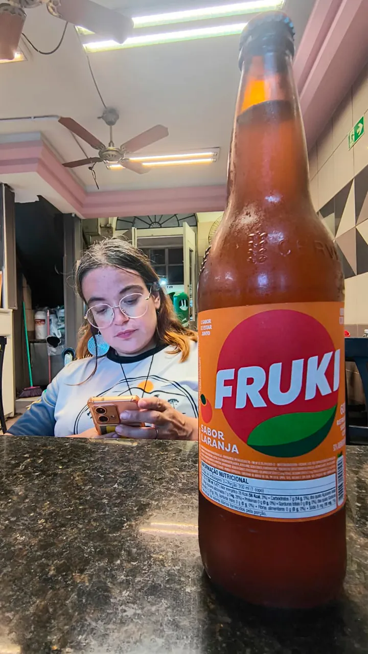 Depois que eles foram embora, ficamos ali aguardando a Lisa. Enquanto isso, aproveitamos para experimentar um pastel delicioso e tomar um refrigerante que nunca tínhamos visto antes – e, surpreendentemente, era muito gostoso!