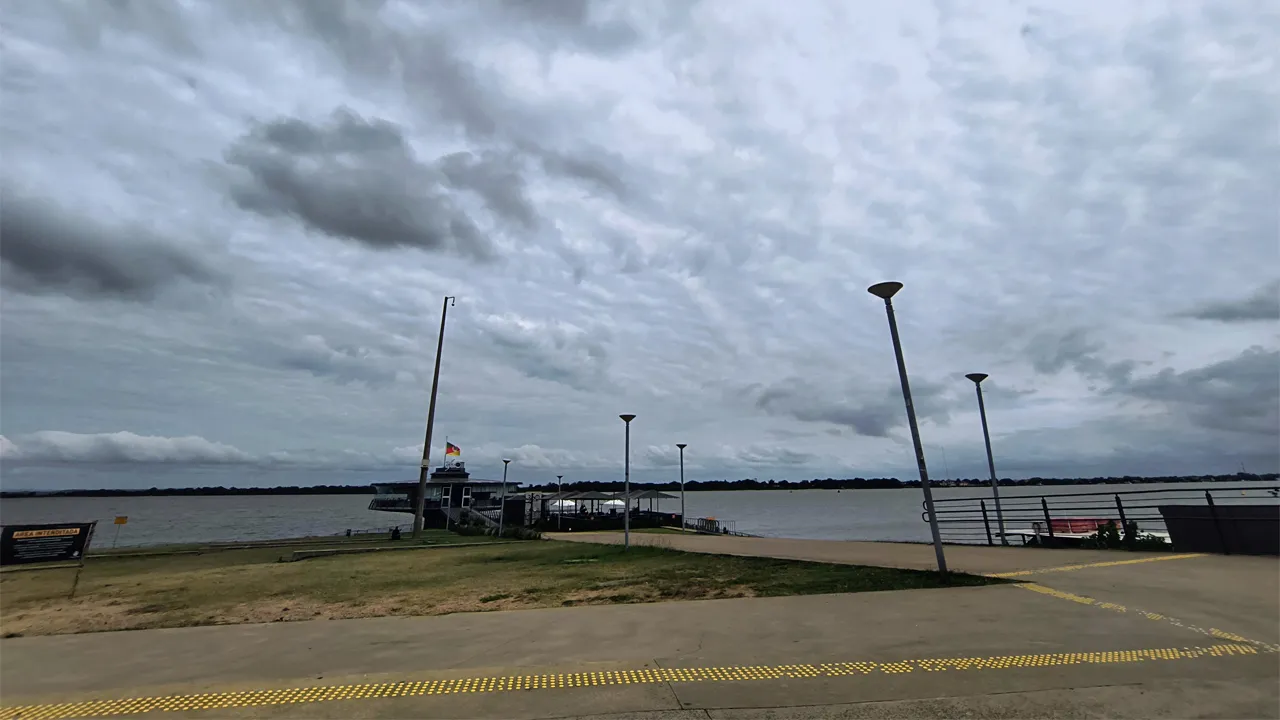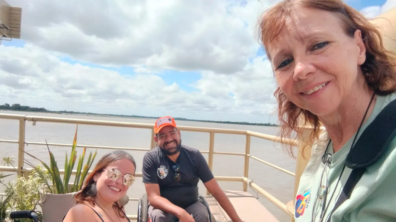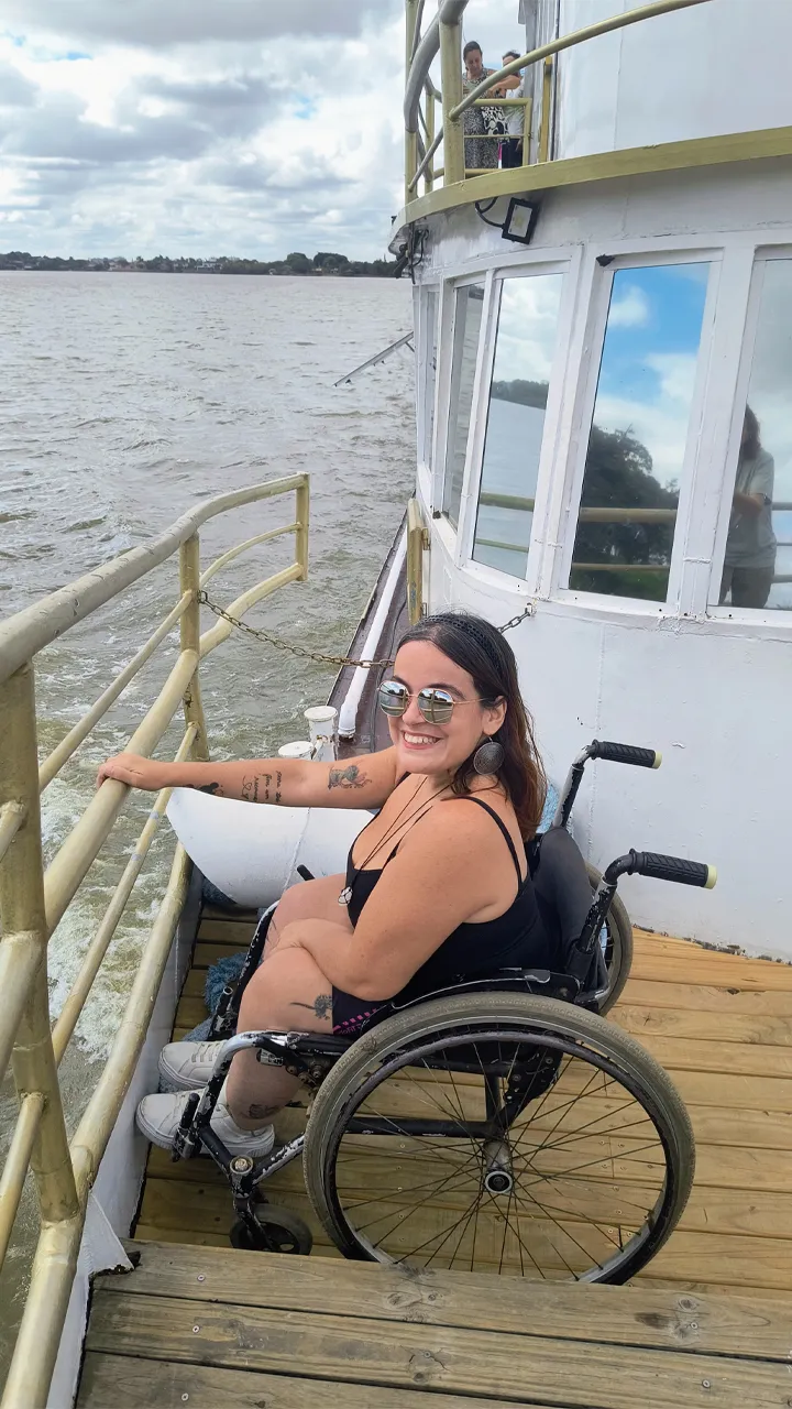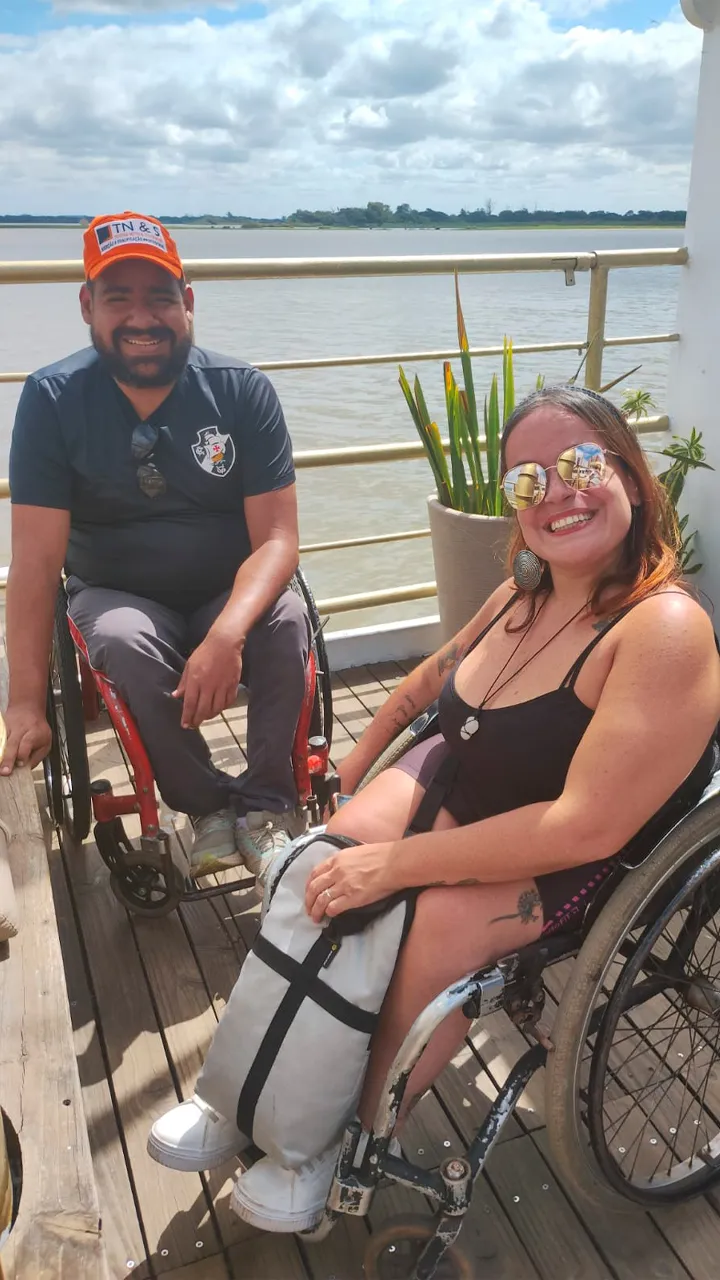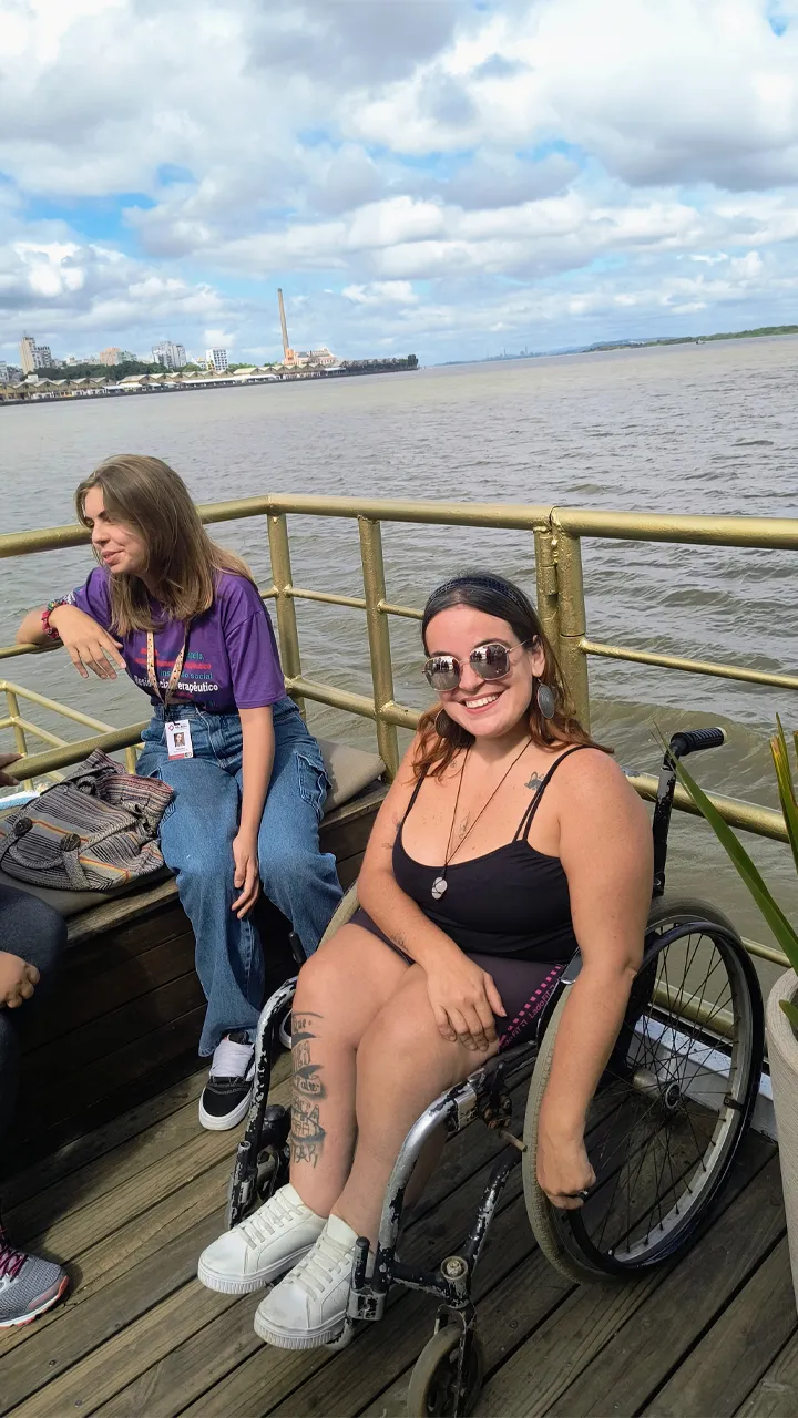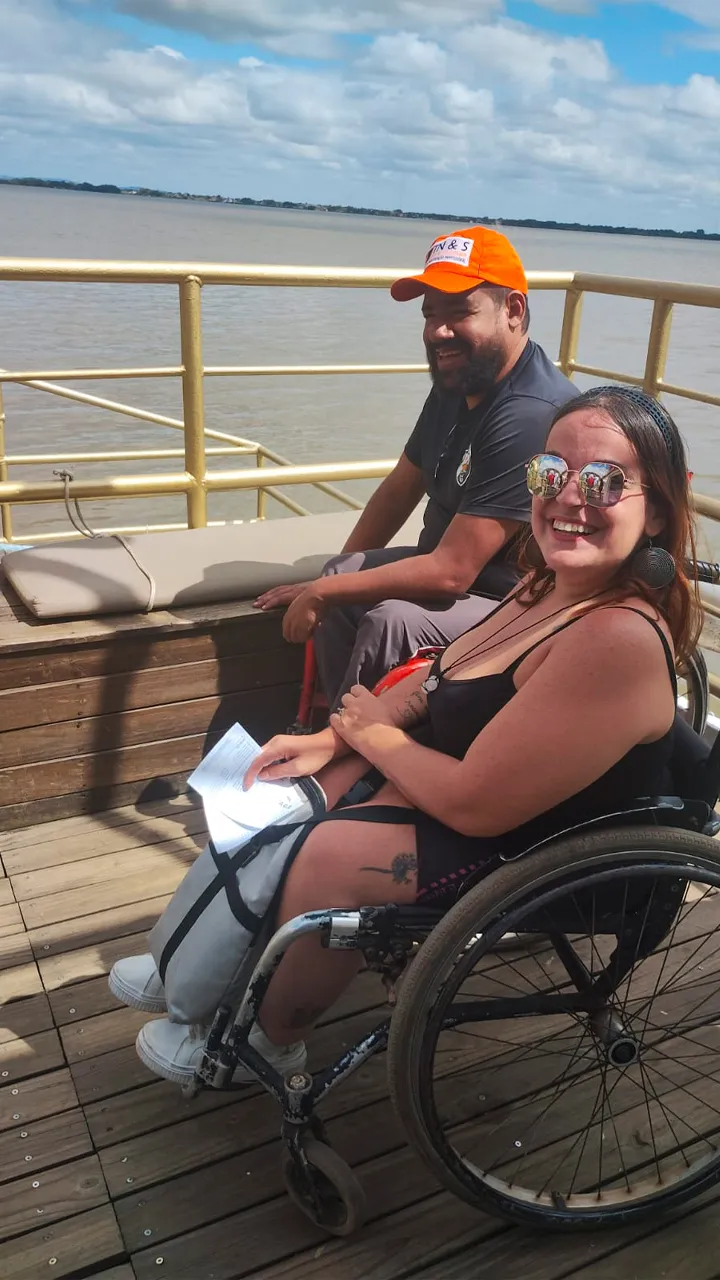 Do lado de fora, há uma pracinha muito agradável de frente para o Guaíba, com uma vista linda. E foi ali que tivemos uma grata surpresa: encontramos um balanço adaptado para cadeirantes. Ver esse tipo de acessibilidade espalhado pelos espaços públicos aquece o coração e mostra que a inclusão está, aos poucos, ganhando mais espaço.