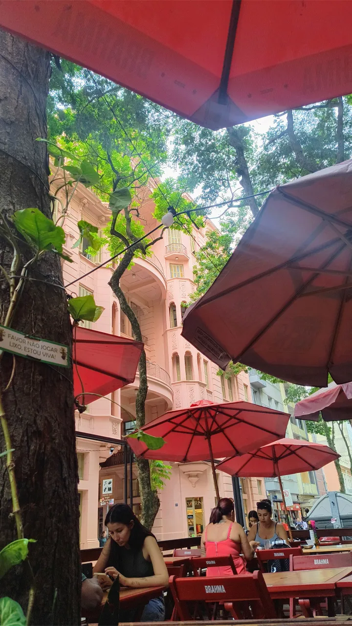 Após o almoço, eu e John seguimos passeando pela cidade enquanto esperávamos o horário do nosso próximo encontro — dessa vez com Lisa de novo e agora com a Mari também! Fomos a outro barzinho no fim da tarde. A Mari demorou um pouquinho por causa do trabalho, mas valeu a pena esperar. Durante a conversa, Lisa nos deu outra surpresa maravilhosa: conseguiu um lugar super aconchegante para que pudéssemos passar a noite e curtir um pouco mais de Porto Alegre, já que na Havan não é possível ficar por causa dos horários. Claro que aceitamos!