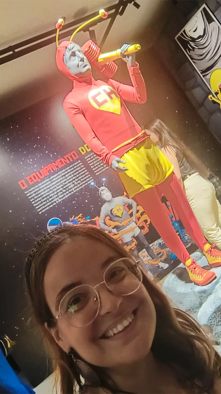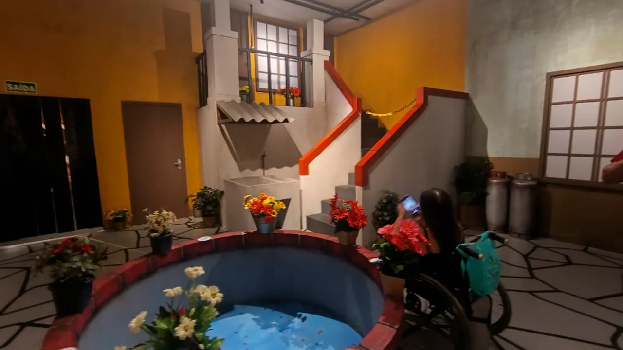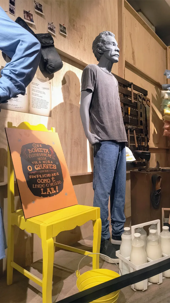 Com o passeio encerrado, nos despedimos da Márcia que precisou ir trabalhar, e também das novas amigas que fizemos durante o trajeto. Em seguida, seguimos para um lugar que me fez voltar no tempo: a exposição do Chaves! Foi como reviver a infância, ver de perto elementos daquele universo tão querido que marcou gerações.