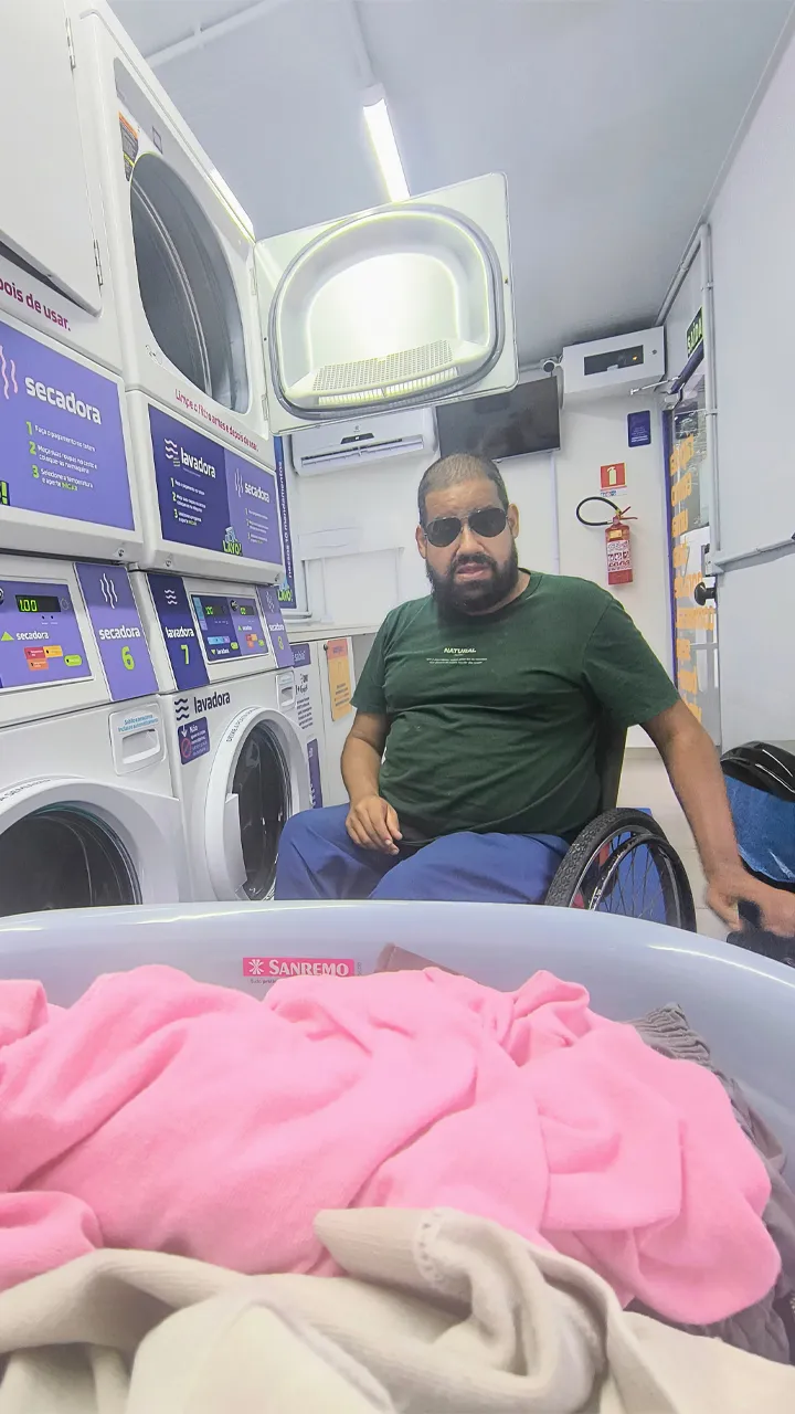 Hoje tivemos um dia especial e cheio de gratidão! Ganhamos um ciclo na Lavô para podermos lavar nossas roupas — um presente que chegou em ótima hora. Assim que chegamos lá, fomos recebidos por duas mulheres muito simpáticas. Uma delas, inclusive, nos reconheceu por causa da reportagem que saiu na Record. Foi incrível ver como a nossa história tem alcançado as pessoas.