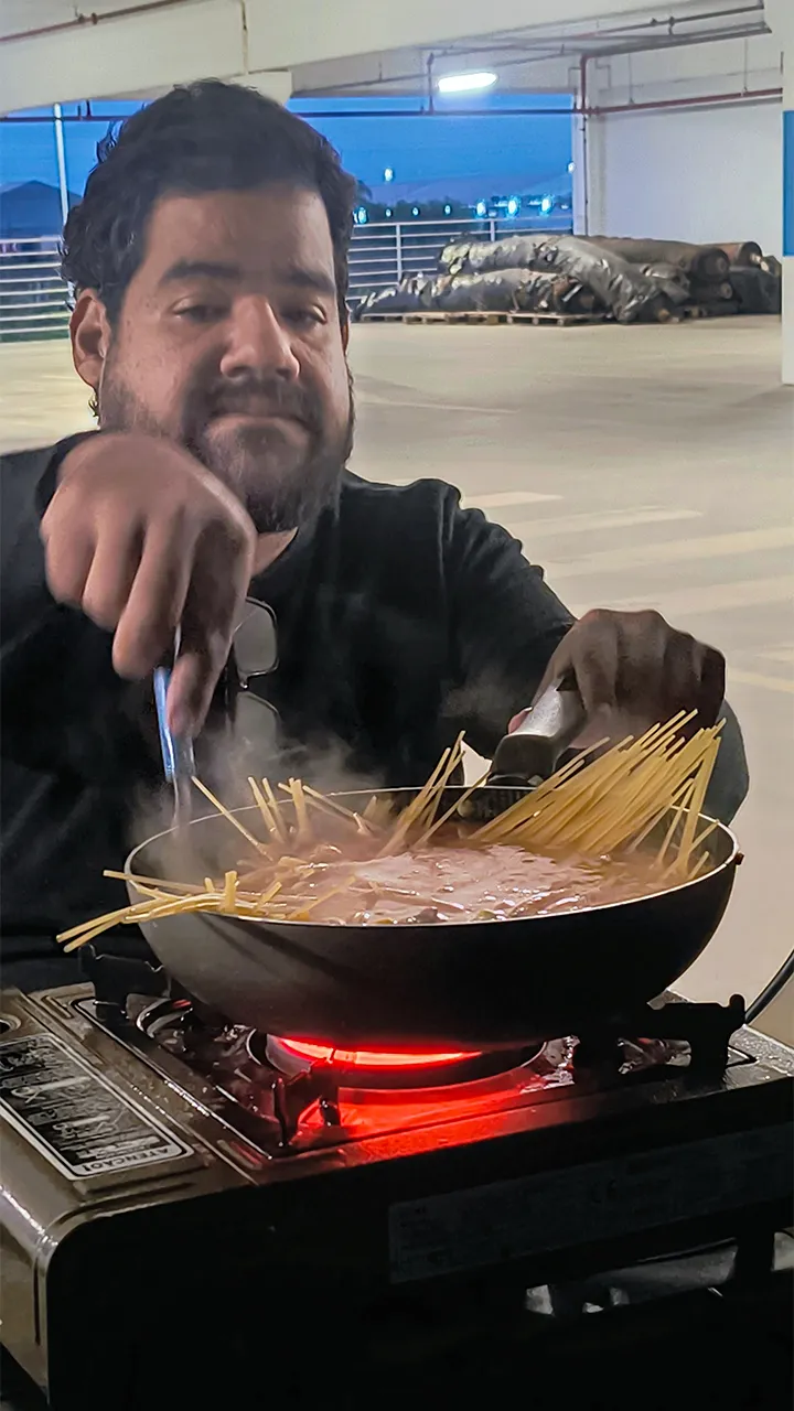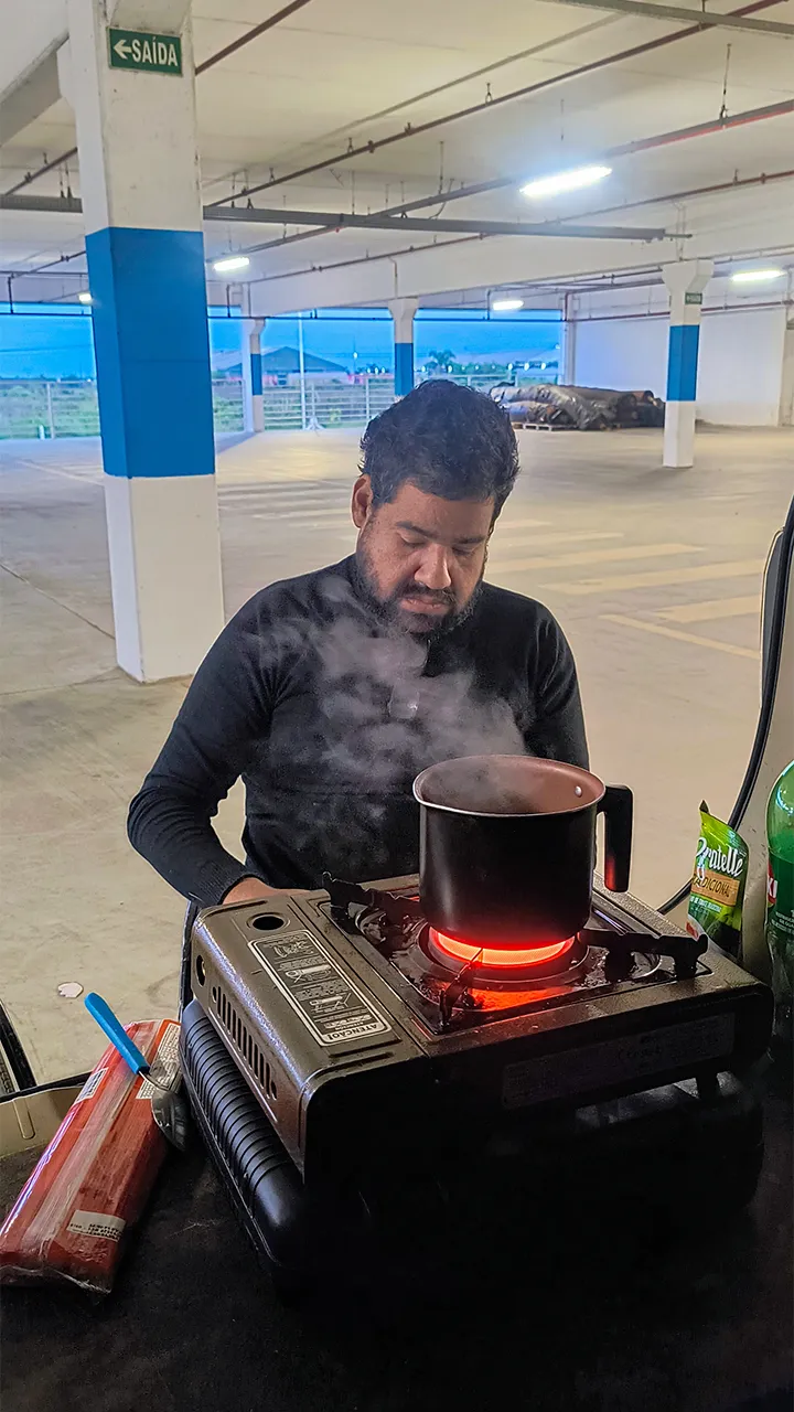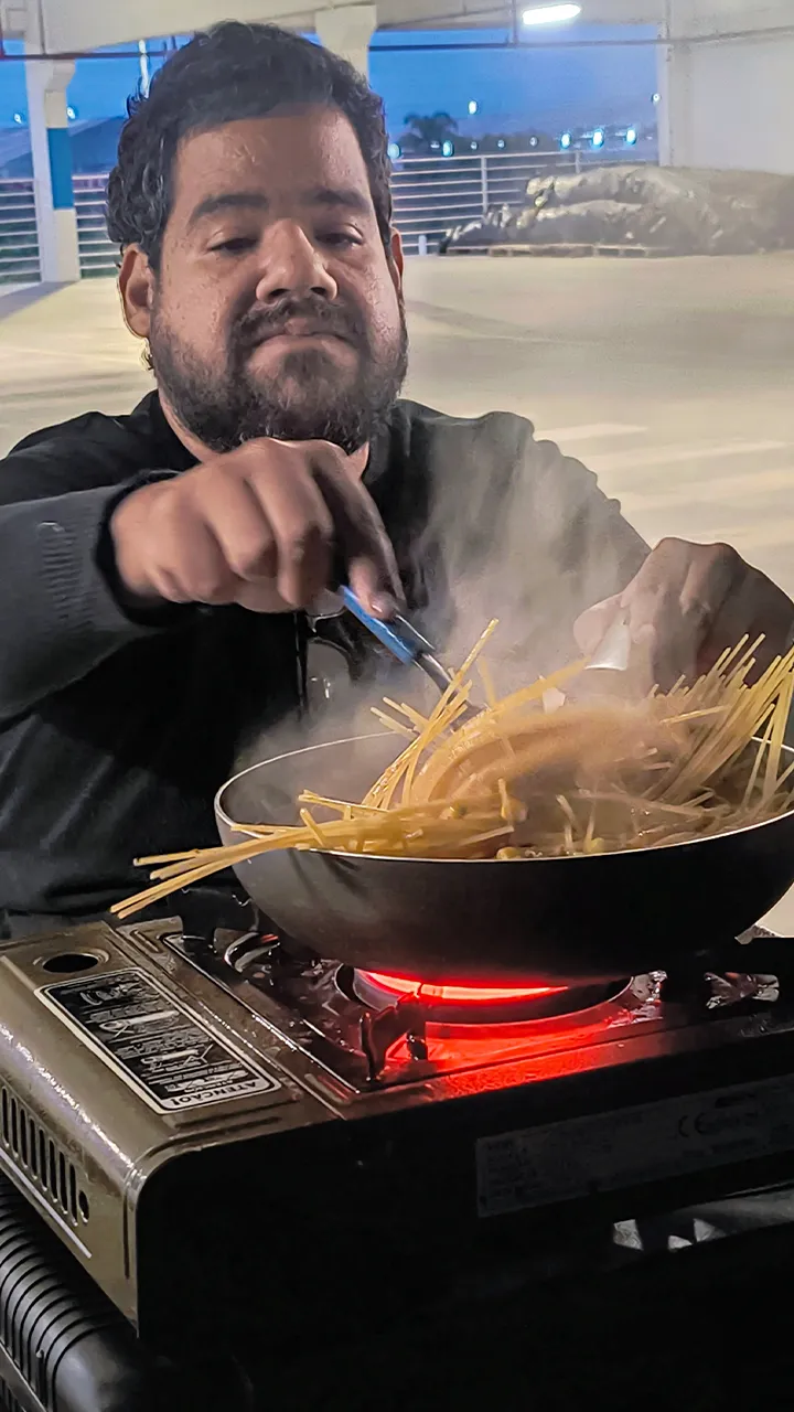 Falando em aquecer… antes de nos rendermos ao frio e irmos dormir mais cedo, o John preparou nosso tradicional macarrão – que já virou o prato oficial das noites geladas por aqui 🍝🔥 Uma delícia como sempre! Mais um dia simples, cheio de conexões e com aquele gostinho bom que só a vida na estrada pode oferecer.